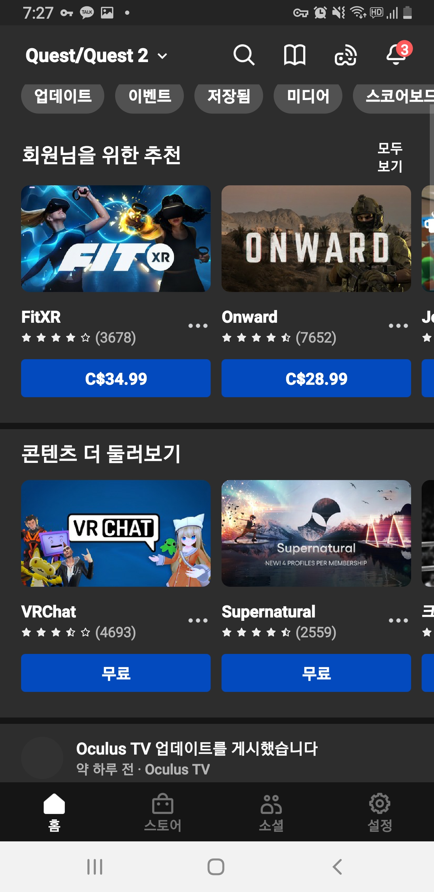 3. 오큘러스 어플들어가서 통화 단위가 변해있음을 확인하자