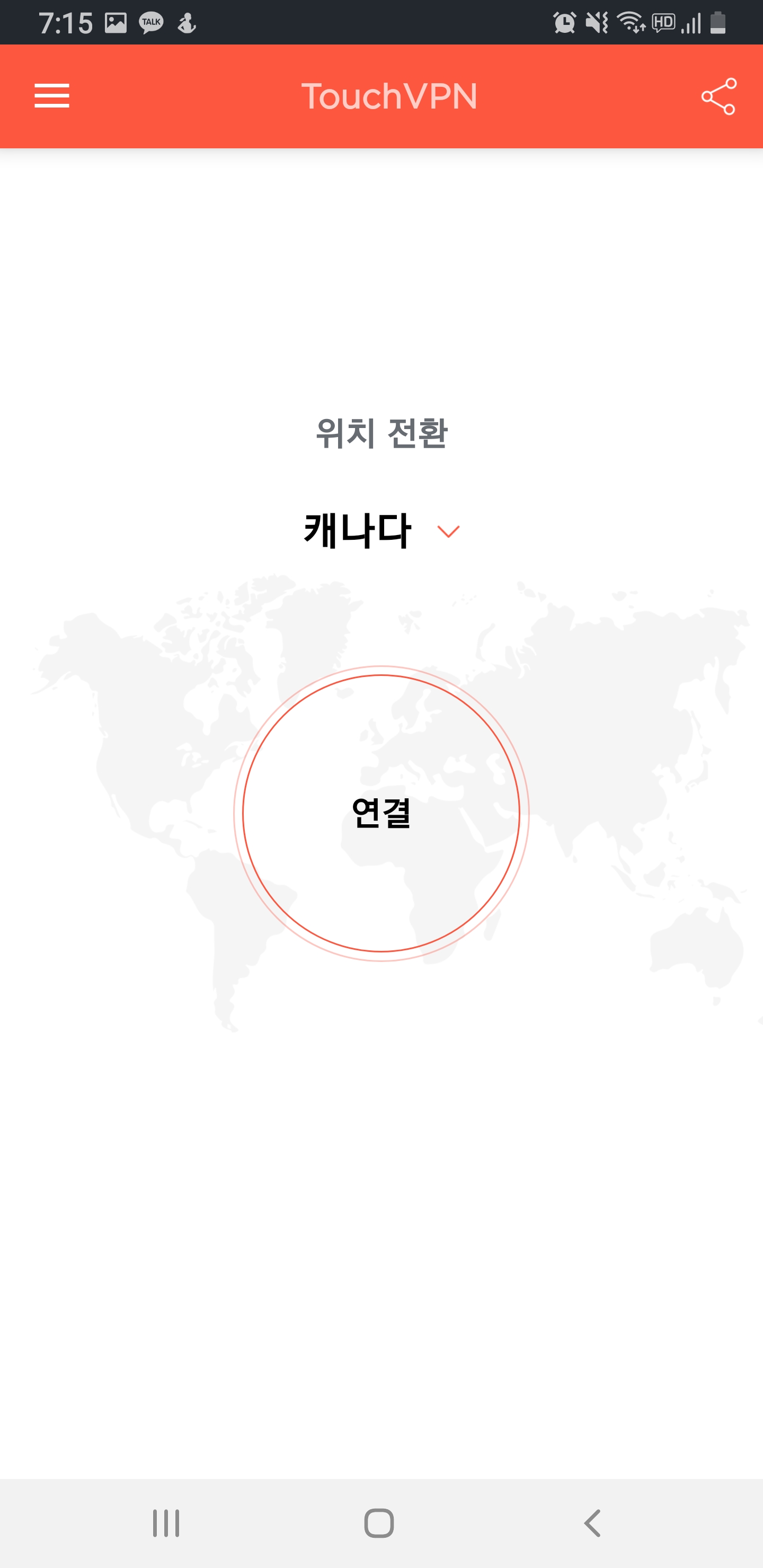어플을 키고 → 최적의 서버에서 캐나다 선택 → 연결 →완료