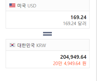 169.24 20만원돈이었다..