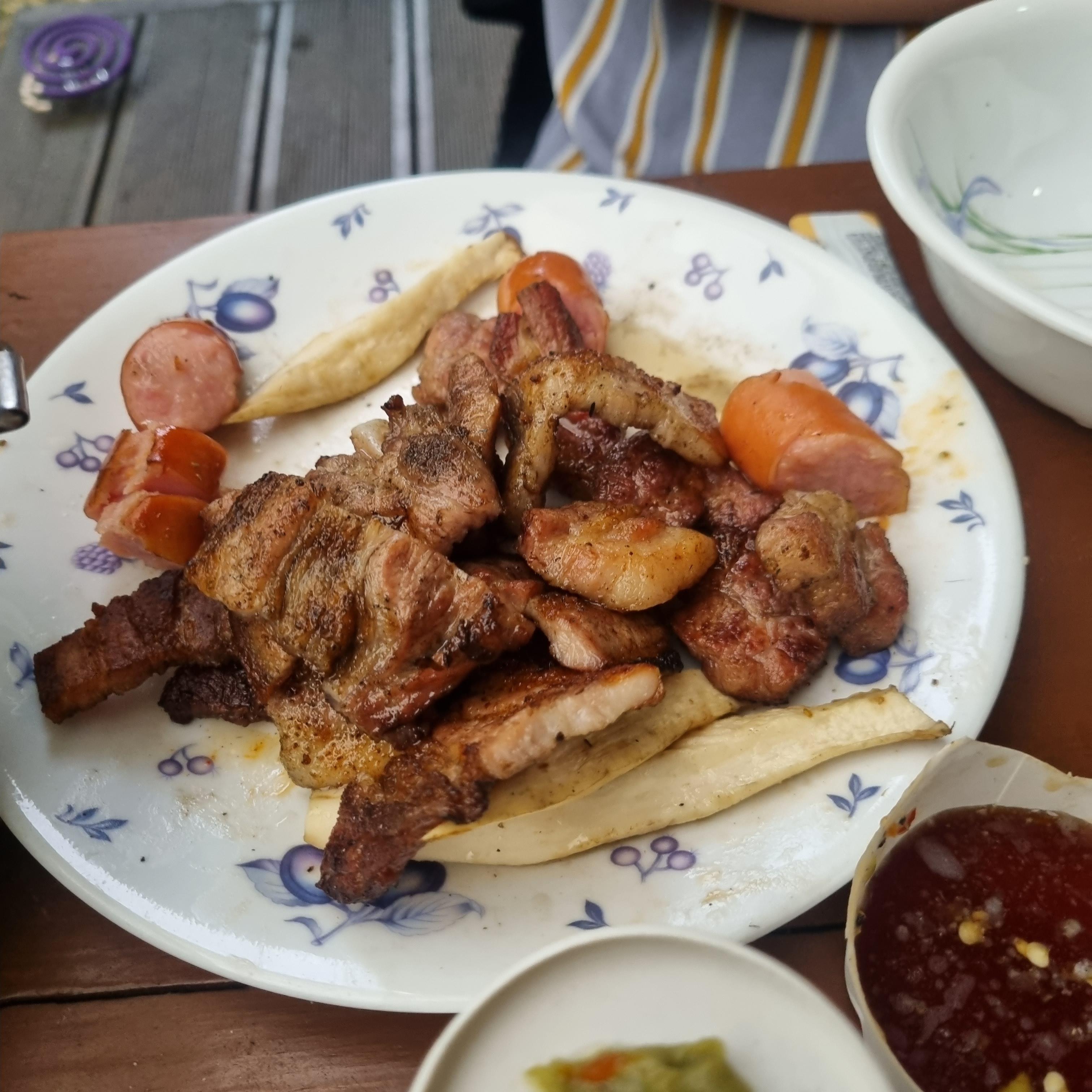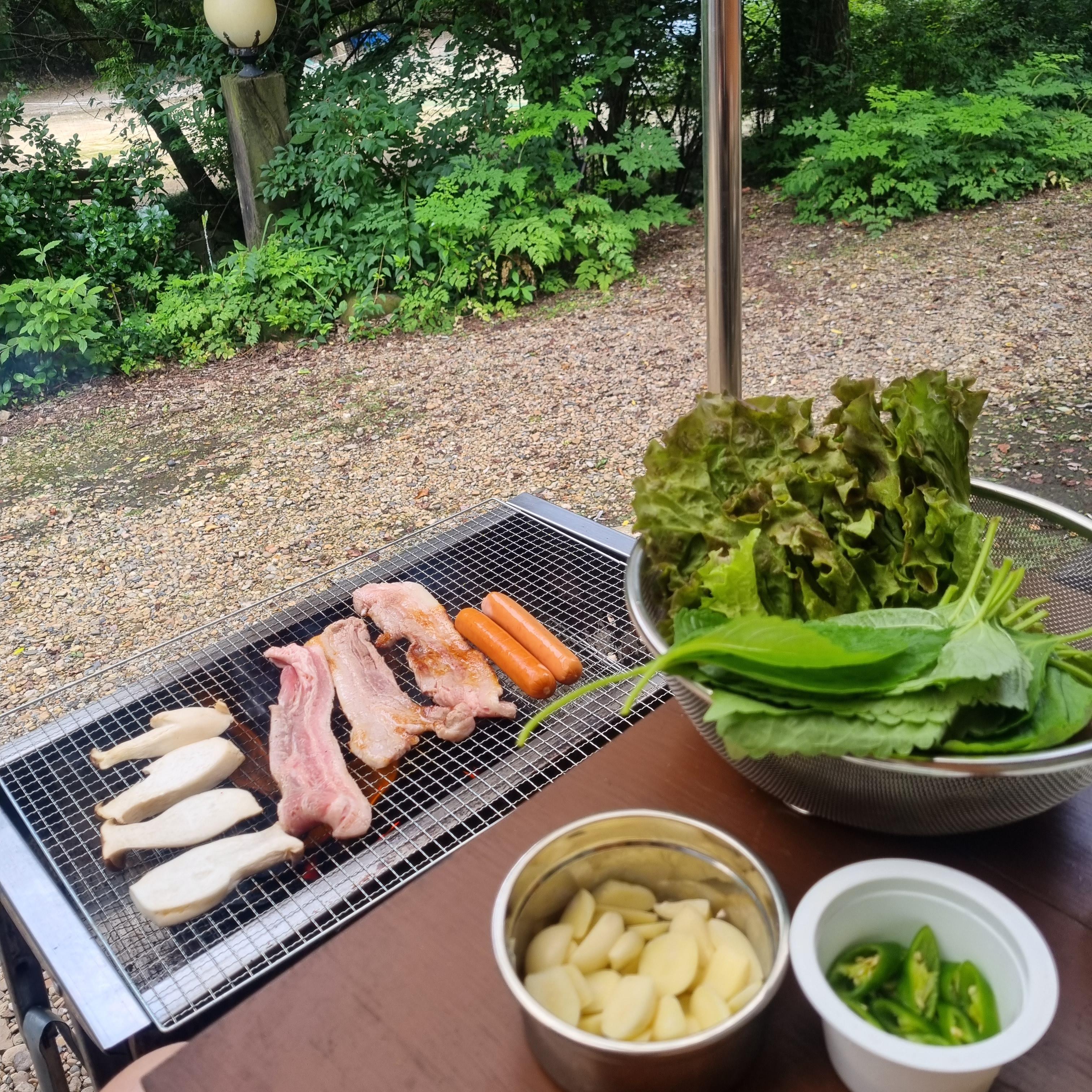 위에 지붕도 있고 바람도 안불어서 맛잇게 구워먹을수 있었다.