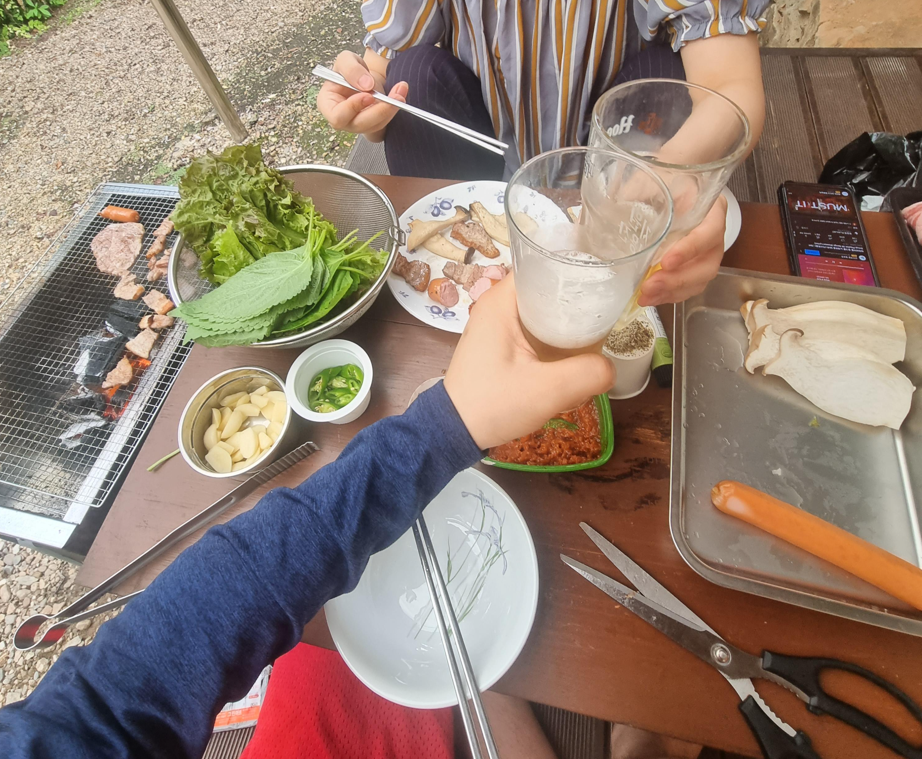 난그동안 밖에 바베큐를 준비