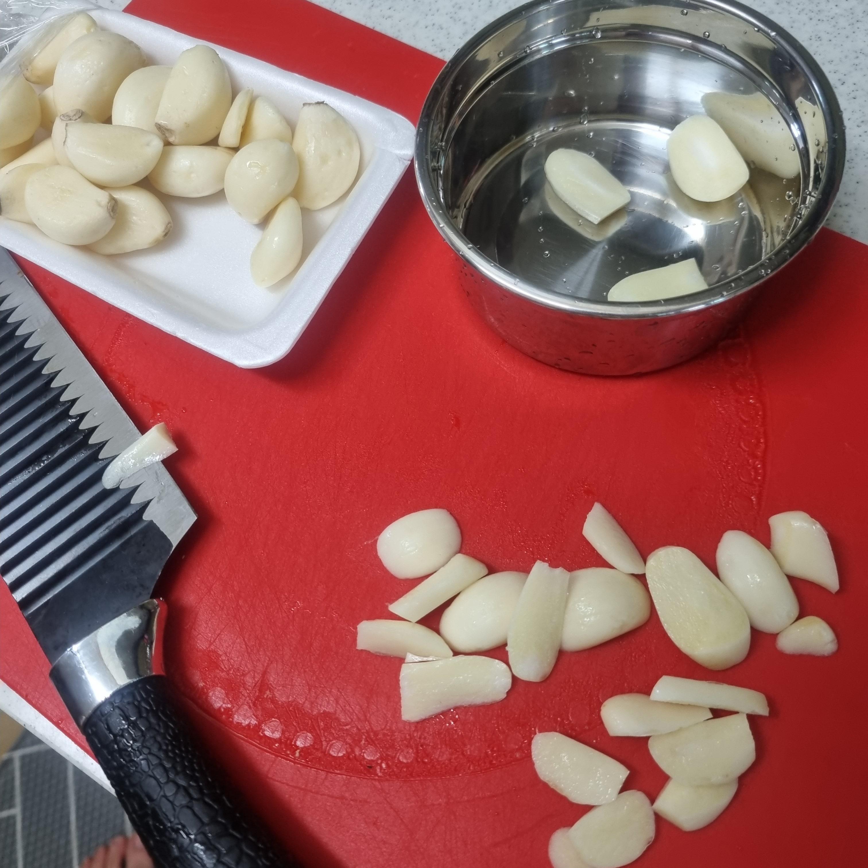 다 씻어놓고 바로 먹을수 있게끔 슬라이드로 썰어간다.