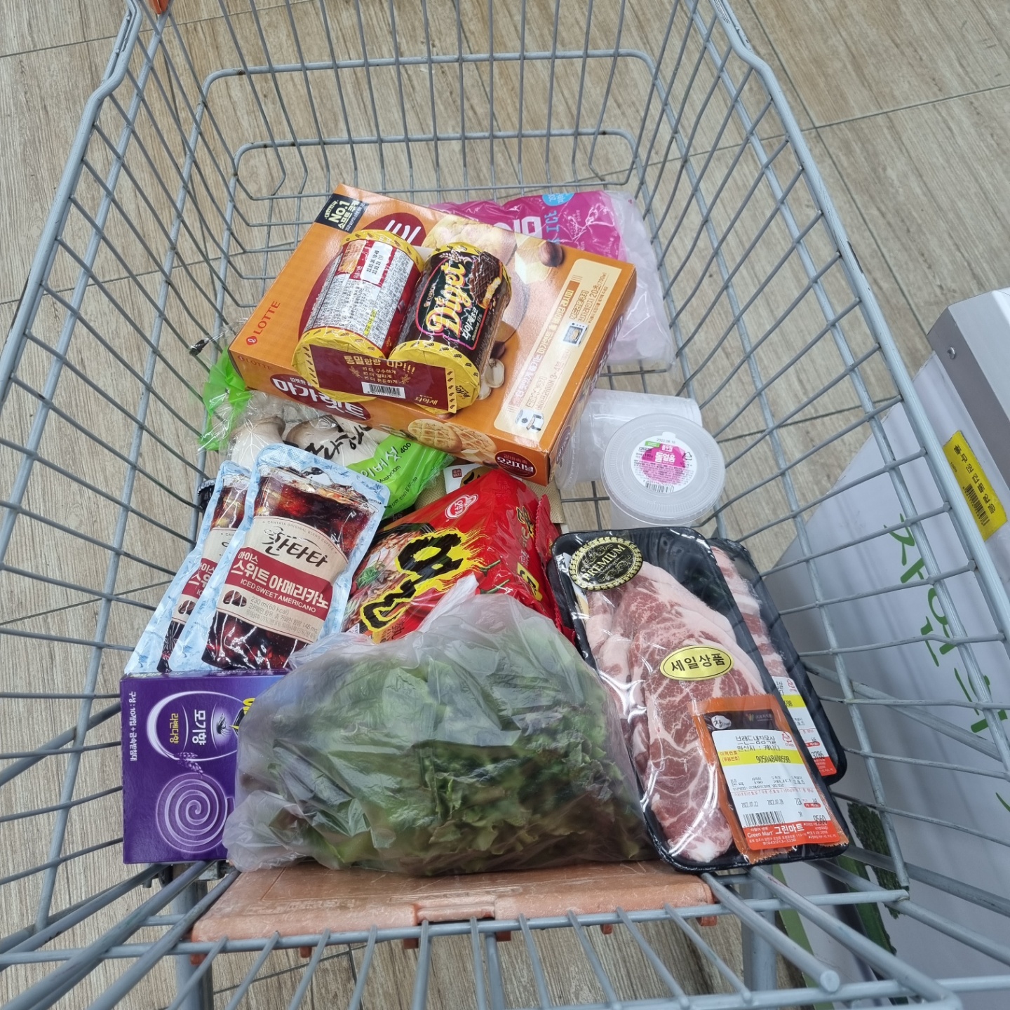 고기도 사고 입이 심심할까봐 과자도 사고