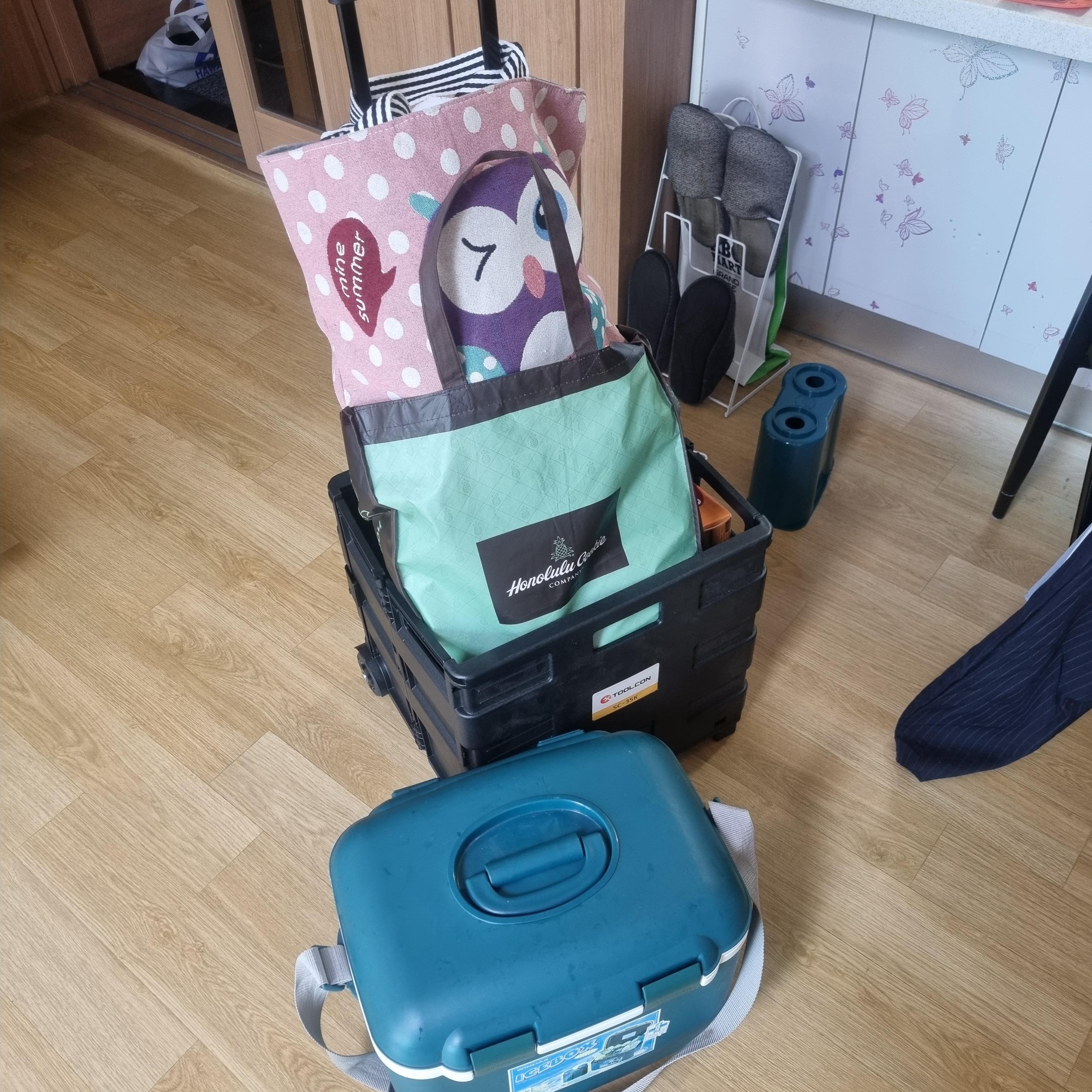 아이스 박스 포함해서 크게 짐이 네개나 된다.