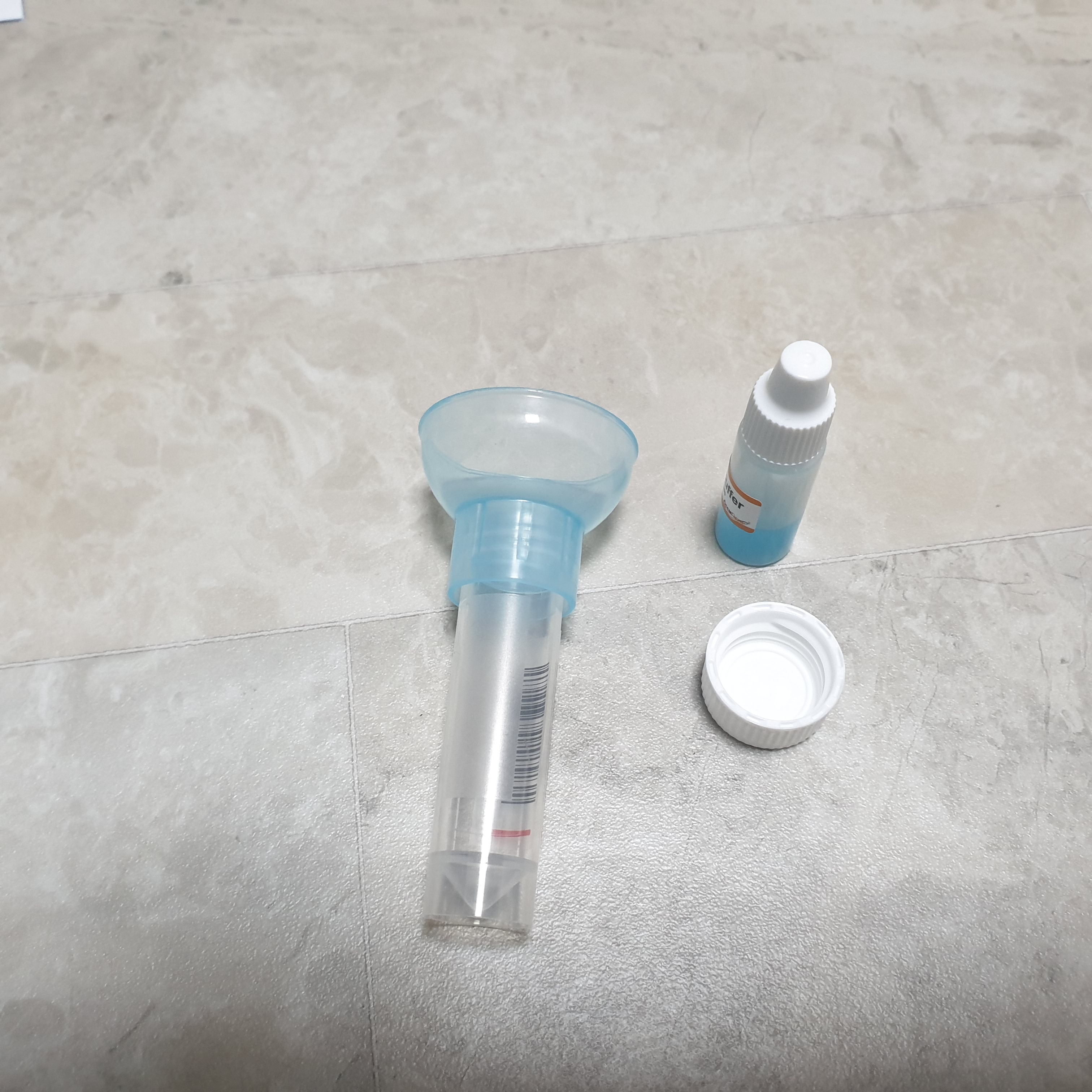 타액(침)을 섞을 통과 깔대기 그리고 뚜껑 그리고 보존액