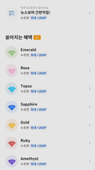 누르면 최대200P 를 적립해주는 데일리 포인트 미션이 있다