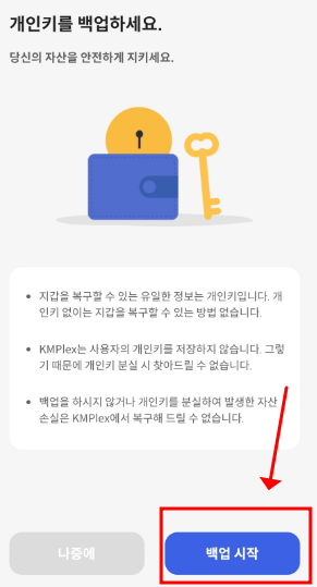 km플레이어 설치후 지갑 생성하기(개인키 백업)