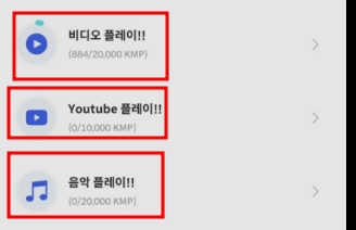 비디오 플레이는 2만, 유튜브는 1만, 음악은 2만 이라는 포인트를 주는데