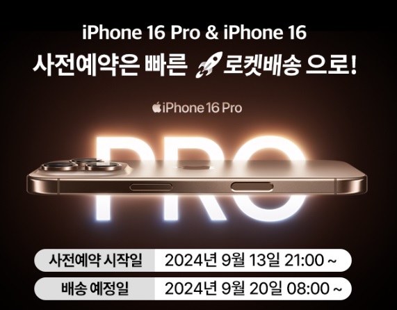 국내에서는 24년 9월 13일 기준 아이폰16 자급제 사전예약을 쿠팡을 통해 빠르게 받아 볼수있습니다.